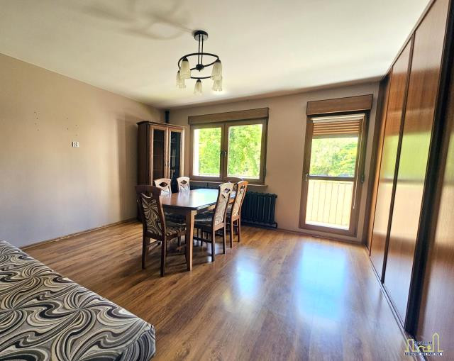 Pokój dzienny umeblowany, a w przedpokoju i jednej z sypialni znajduje się pojemna zabudowa szaf. Dodatkowym atutem jest przestronny balkon z widokiem na zieleń.